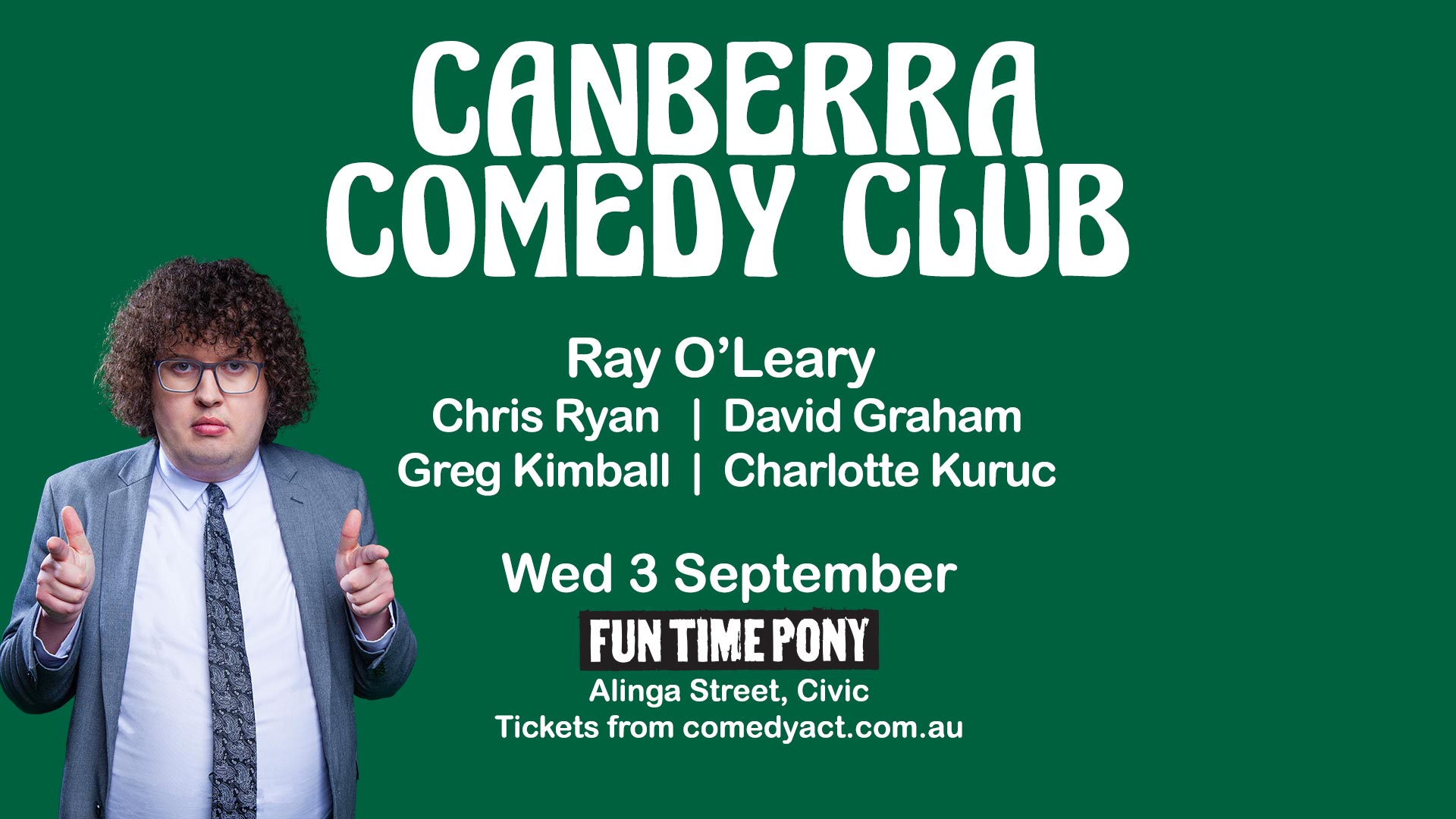 Canberra Comedy Club for September has Ray O’Leary headlining with his first visit to the Canberra Comedy Club. On our support bill we have MC Chris Ryan, Greg Kimball, Charlotte Kuruc and David Graham.
